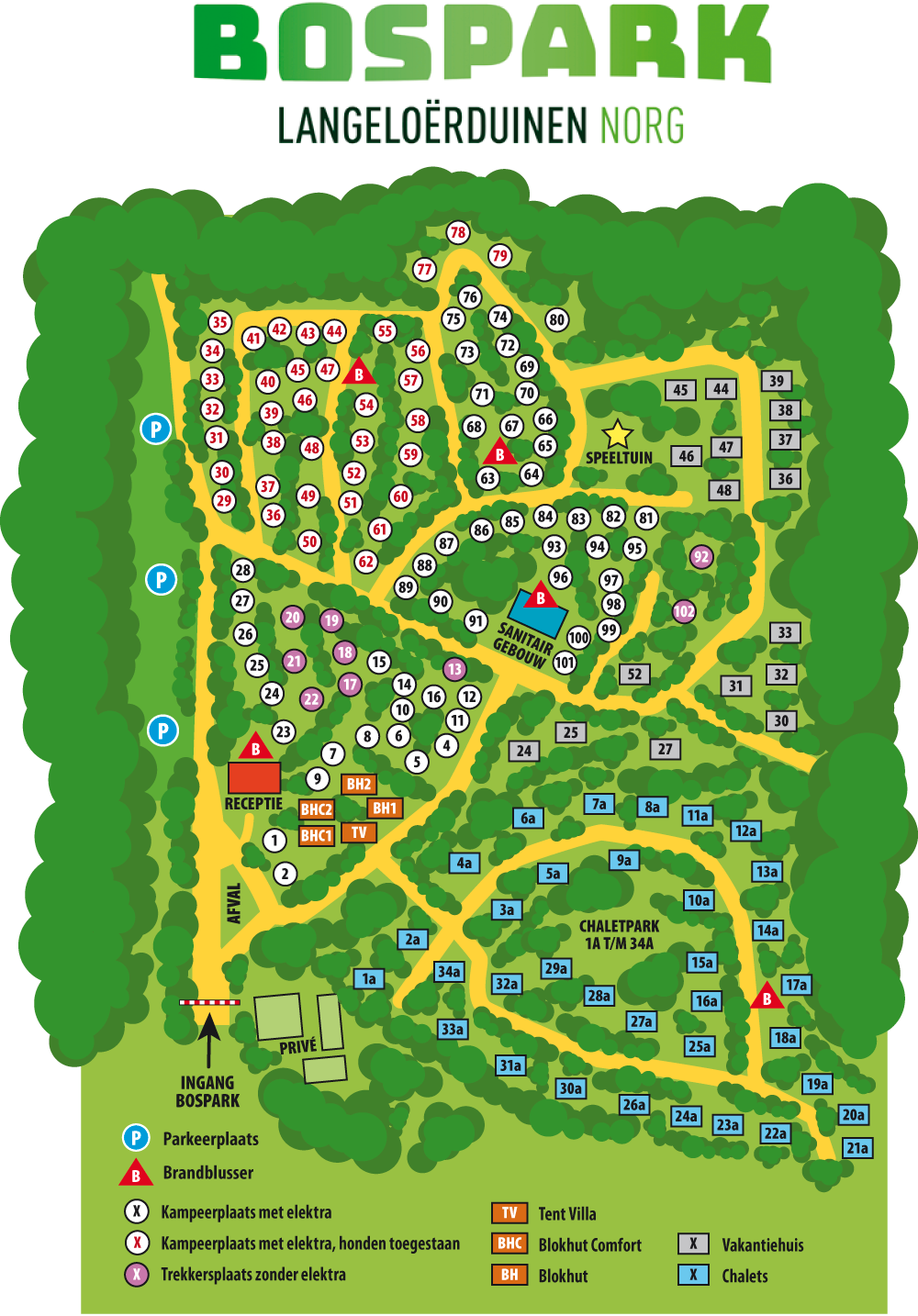 Het Bospark ligt midden in het natuurgebied Langeloërduinen in de kop van Drenthe. De centrale ligging maakt Norg extra aantrekkelijk. Enkele kilometers fietsen en u steekt al de grens over naar Groningen of Friesland. Eigenlijk vindt u in de kop van Drenthe alle landschappen van de gehele provincie bij elkaar in een notendop. Beekdal landschap, bos, hei, vennetjes, stuifduinen, dorp en es landschap, een recreatieplas, hunebedden en een groot meer… het is er allemaal.